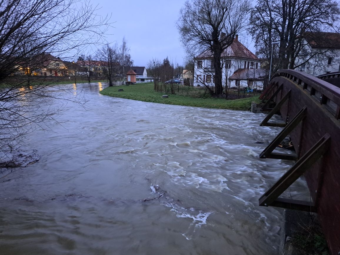 15. 4. 2023 krátce po půlnoci byl vyhlášen 1. stupeň povodňové aktivity v Dačicích.