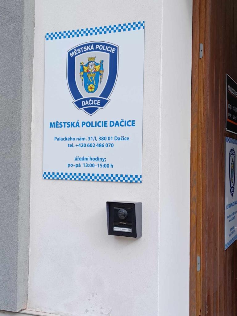 Vážení občané, od 1. března 2025 najdete Městskou policii Dačice na nové adrese Palackého nám. 31 v Dačicích. Stěhuje se do bývalých prostor banky Sparkasse, vstup průjezdem ze dvora.