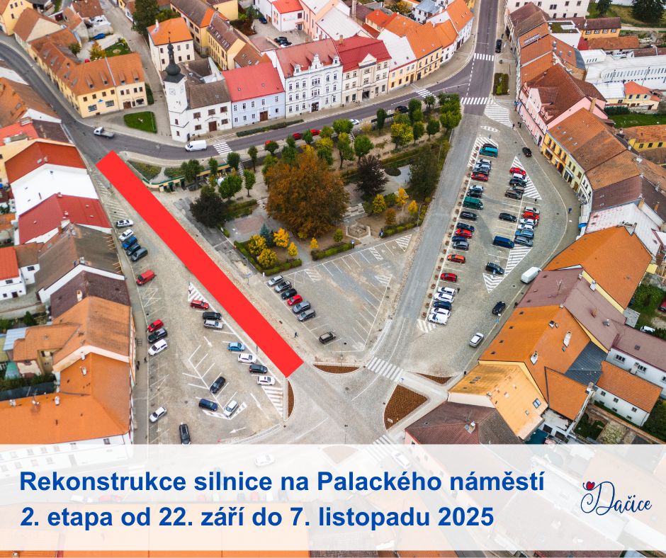 Během prací dojde k dopravním omezením v části Palackého náměstí (úsek Jindřichův Hradec – Jemnice). Prosíme vás o trpělivost a děkujeme za pochopení.