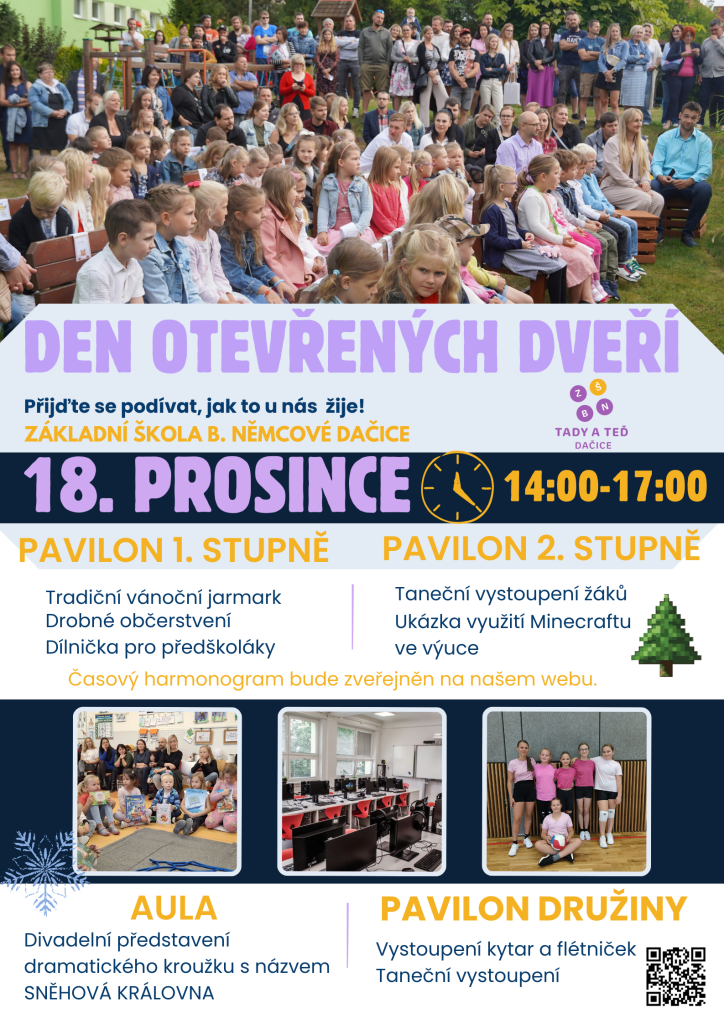 Vánoční jarmark, taneční vystoupení, drobné občerstvení, dílničky, ukázka využití Minecraftu ve výuce.