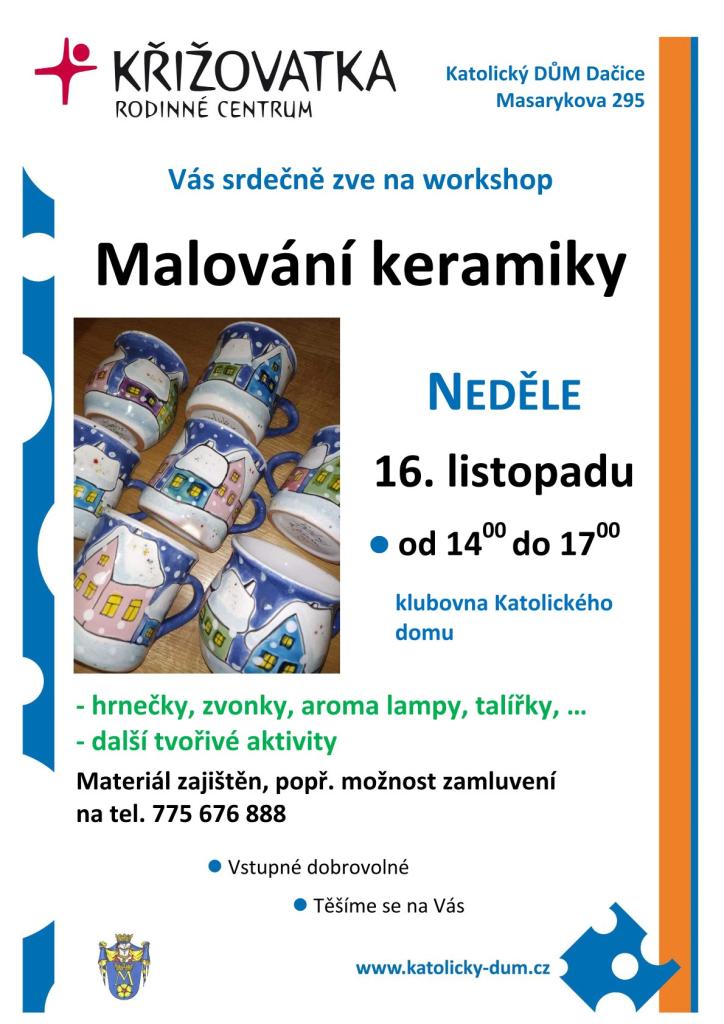 Hrnečky, misky, zvonky, aromalampy, talířky...materiál zajištěn. Tvořit můžete i vlastní výrobky ze samotvrdnoucí hmoty.