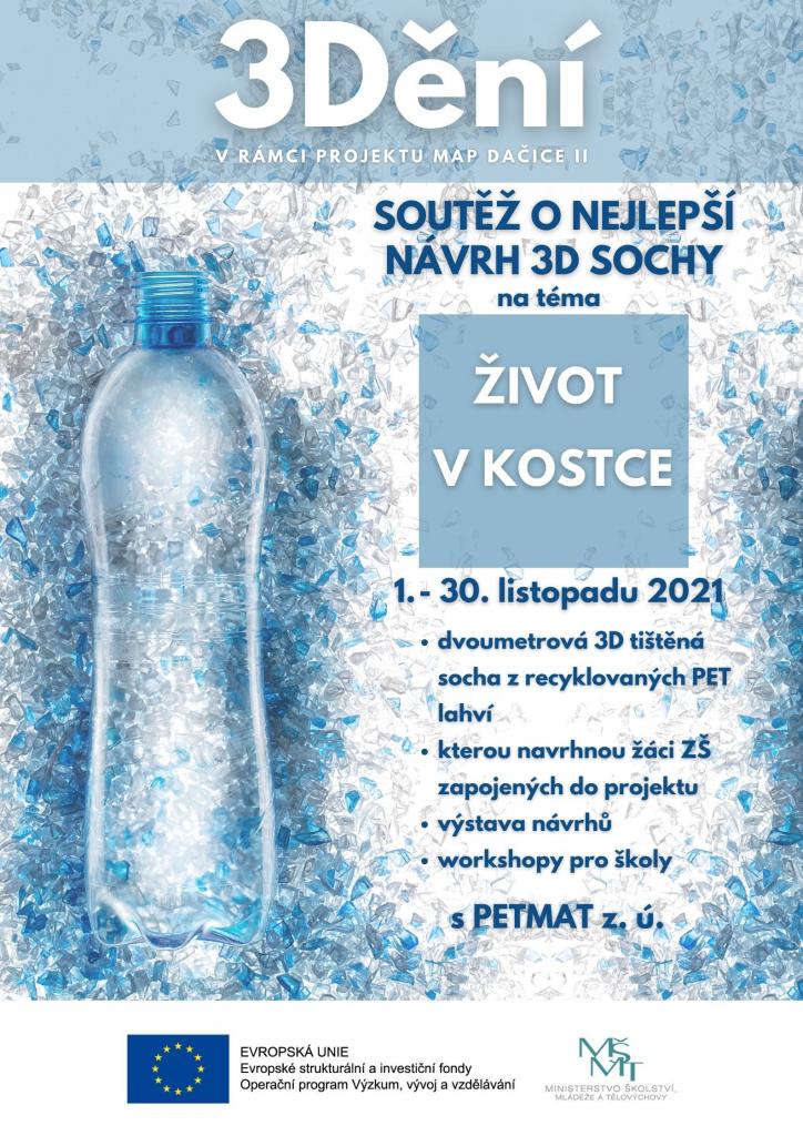 Žáci se zapojí i do sběru PET lahví, z nichž specializovaná firma Purum z Plané nad Lužnicí vyrobí tiskovou strunu do 3D tiskáren, kterou následně použijeme na tisk sochy. Se sběrem lahví pomůže firma FCC Dačice.
