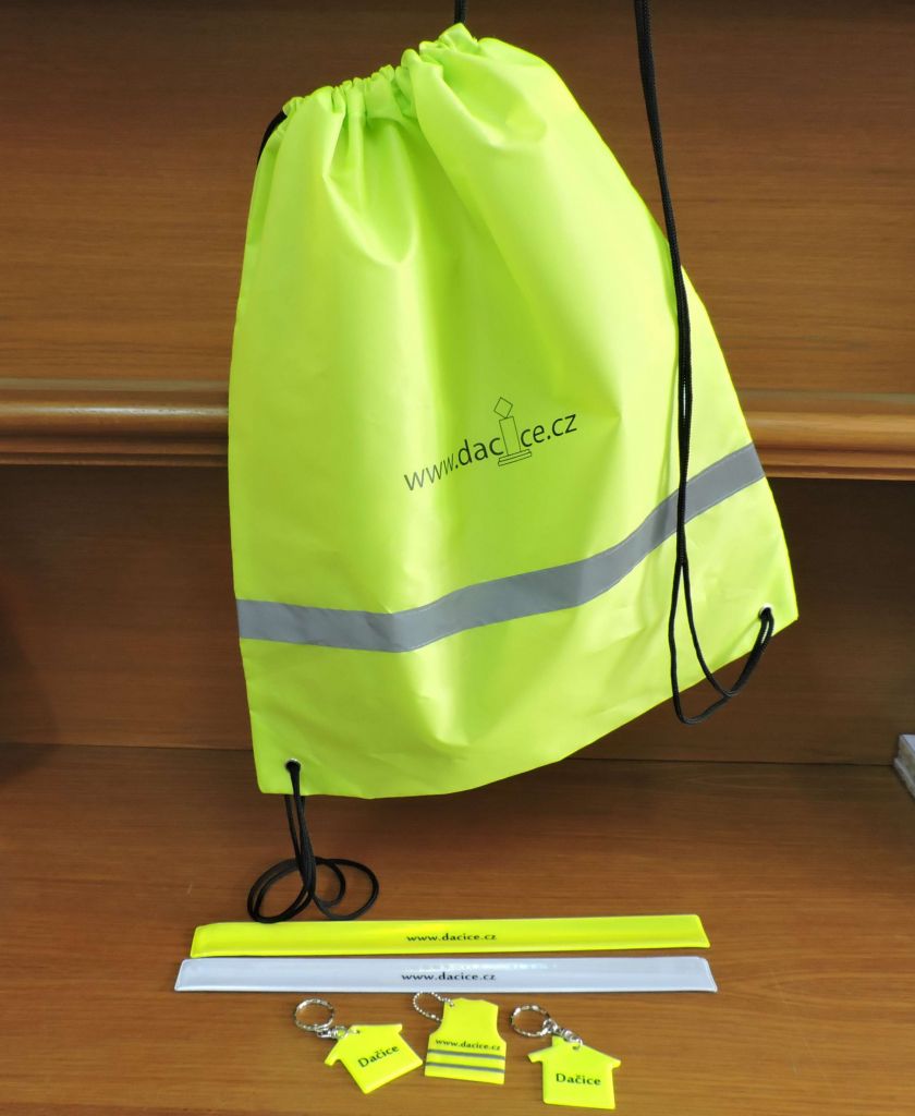 Reflexní předměty např. reflexní pásky, přívěsky, batohy lze zakoupit také na Infocentru na Městském úřadě Dačice.