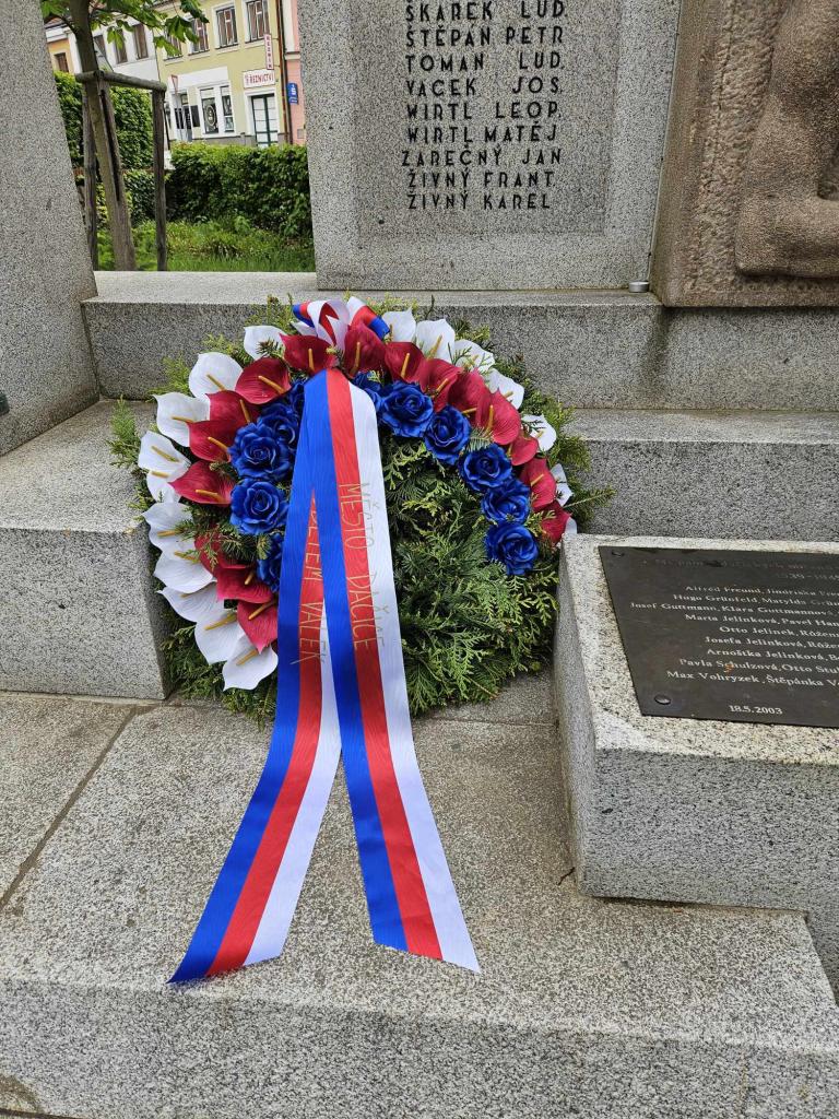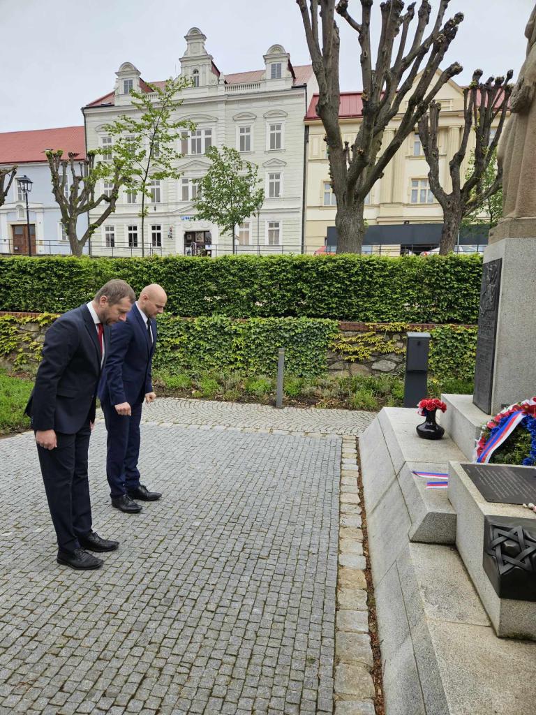 Starosta Miloš Novák a místostarosta Jiří Baštář uctili ve středu 8. května 79. výročí ukončení druhé světové války a památku obětí tohoto válečného konfliktu položením věnce k pomníku v Kancnýřově sadu na Palackého náměstí.