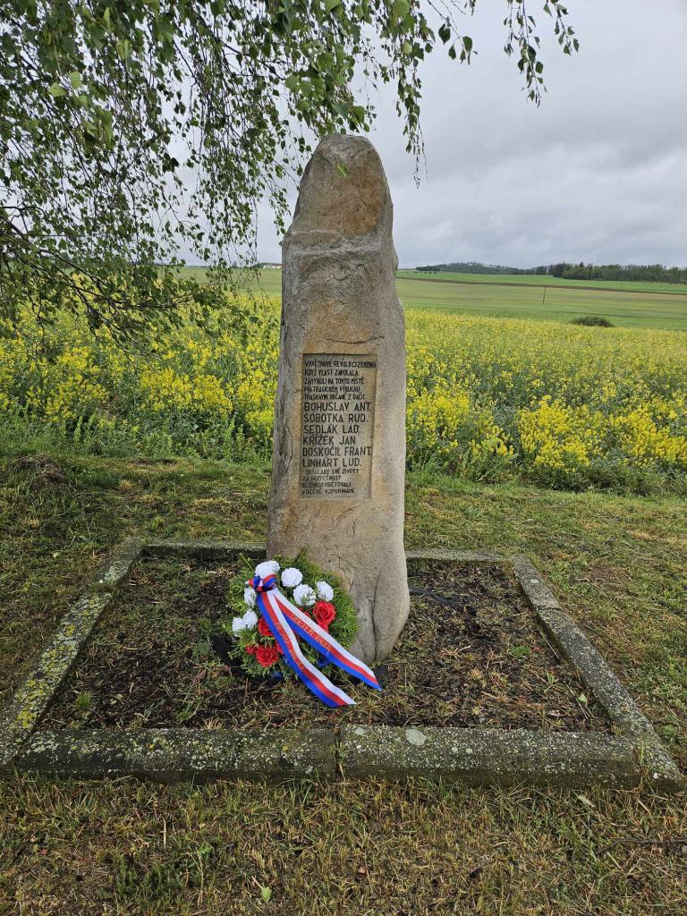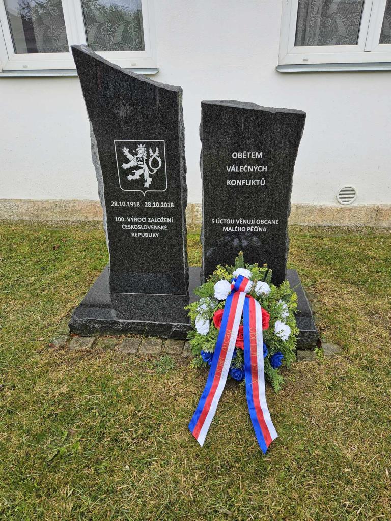 Den před státním svátkem položili představitelé města kytice s trikolorou také na další pietní místa v Dačicích a místních částech.