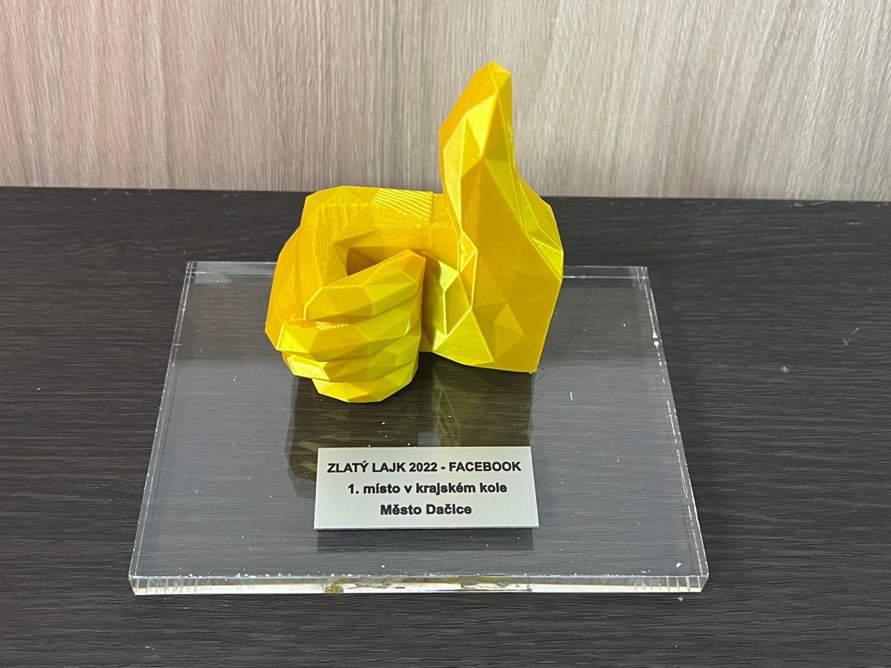 Zlatý lajk hodnotí podle různých kritérií sociální účty českých měst a obcí. Na těchto komunikačních kanálech se věnujeme všemu, co se týká dění ve městě. Facebook se věnuje spíše chodu městského úřadu a důležitým informacím pro občany. Instagram představuje Dačice pomocí fotografií. Pestrá nabídka turistických cílů se nesoustředí jen na památky, ale i na fotodokumentaci z akcí, krásnou přírodu a různá dačická zákoutí.