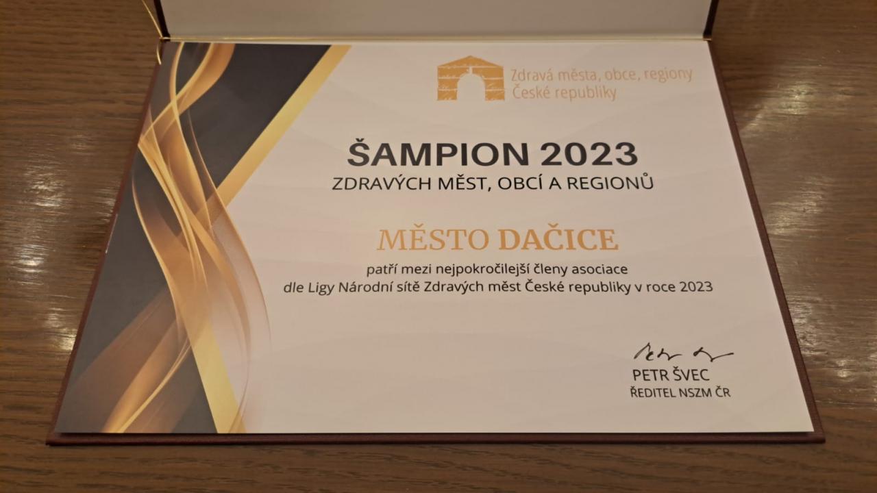 Město Dačice bylo na akci oceněno za svou dlouhodobou a nadstandardní práci v rámci Programu Zdravé město.