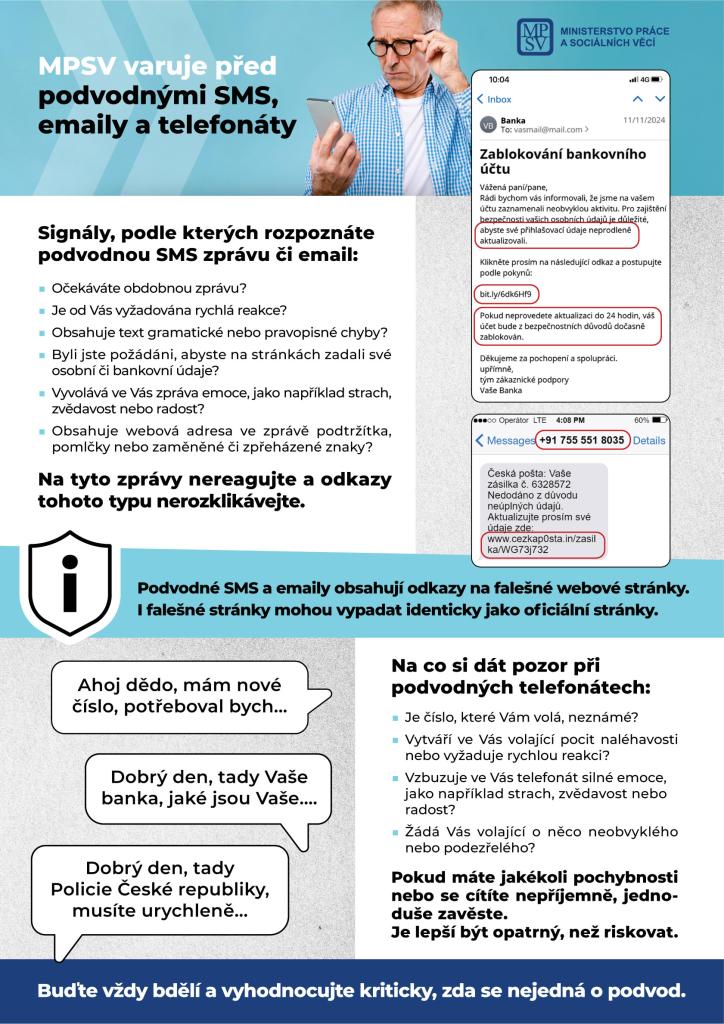 Aktuality - Ministerstvo práce a sociálních věcí nadále varuje před falešnými e-maily, SMS a telefonáty