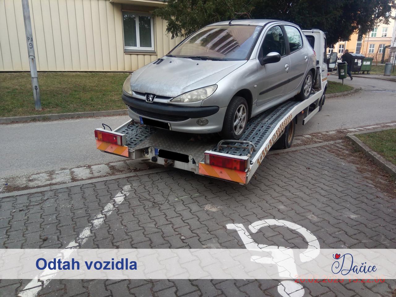 Pro osobní automobil, který neoprávněně parkoval na místě pro invalidy, zajistila Městská policie Dačice nucený odtah.
