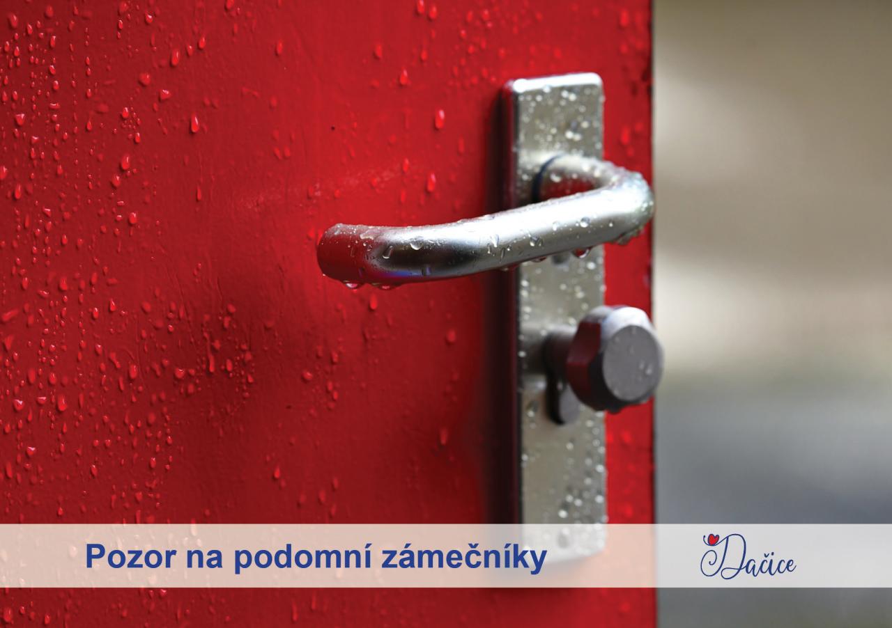Pozor na podomní zámečníky! Upozorňujeme, že v Dačicích se pohybuje podvodná zámečnická firma, která lidem nabízí výměnu bezpečnostních zámků za nepřiměřenou cenu.