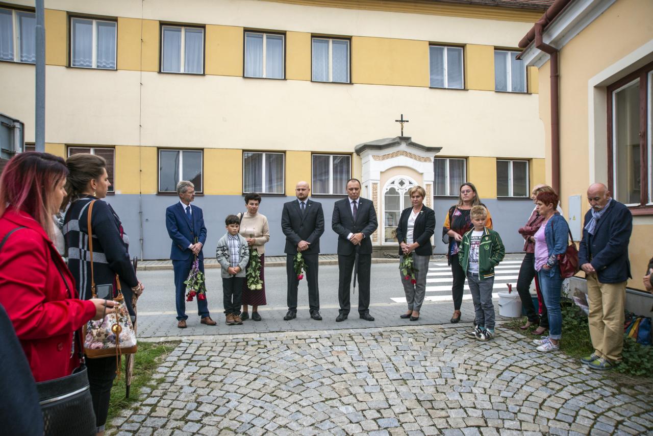 Během krátkého pietního aktu promluvil starosta města Karel Macků a předseda Senátu Parlamentu ČR pan Miloš Vystrčil. Životní osud rodiny Vohryzkových přiblížila přítomným paní Léblová ze spolku ZIKARON z Jindřichova Hradce. Samotného položení Kamenů se pak ujala paní Věra Kufová, neteř Štěpánky Vohryzkové.