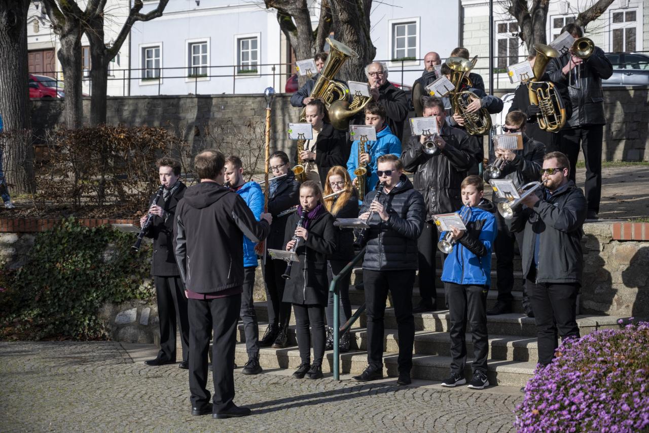 Státní hymna a další hudební doprovod zazněly v podání dechového orchestru ZUŠ Dačice.