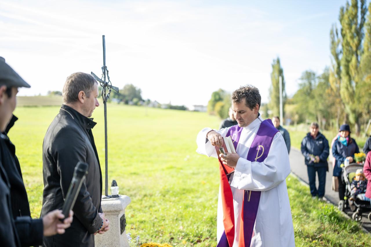 Otec Karel Janů žehnal nový kříž v neděli 13. října 2024.